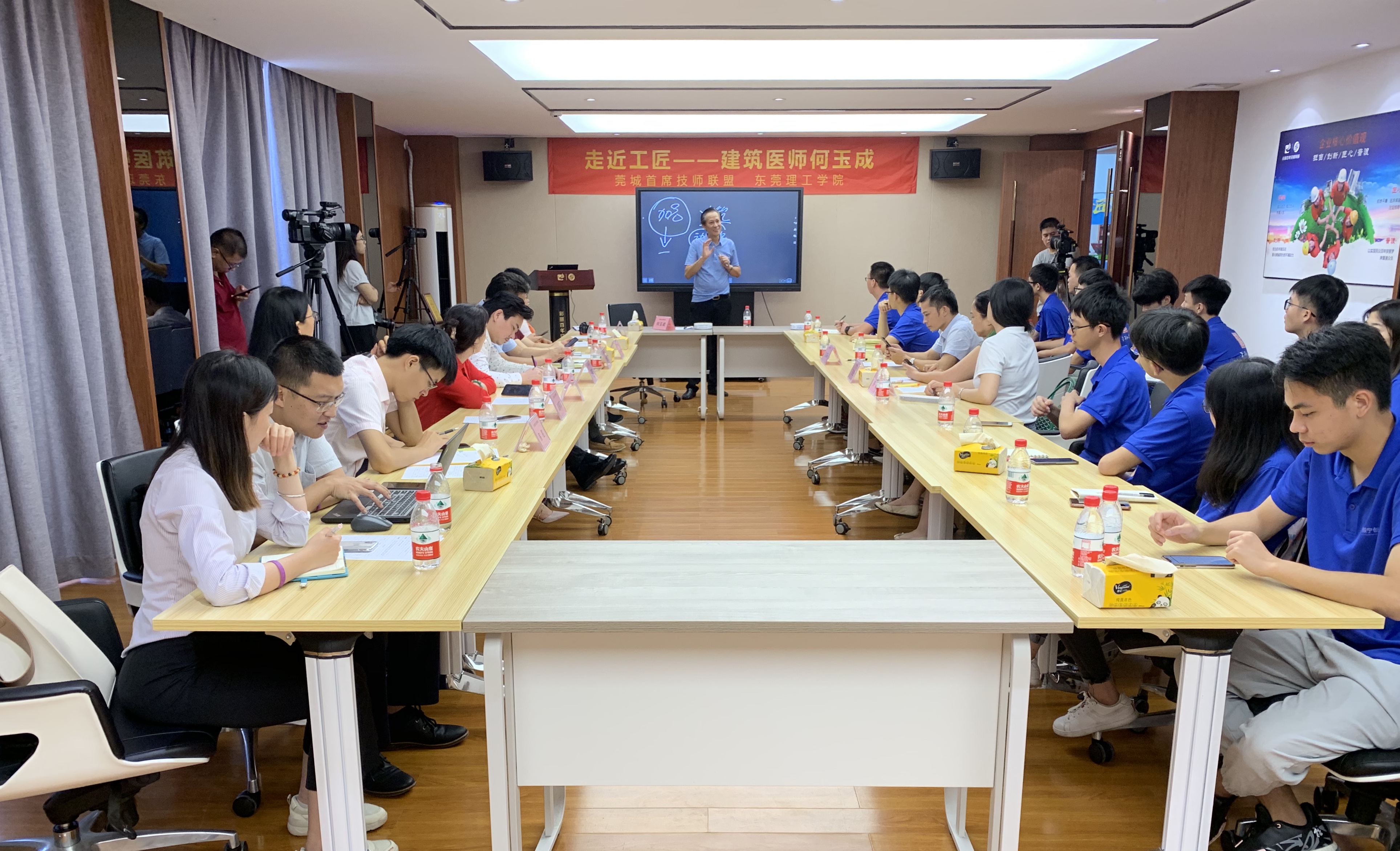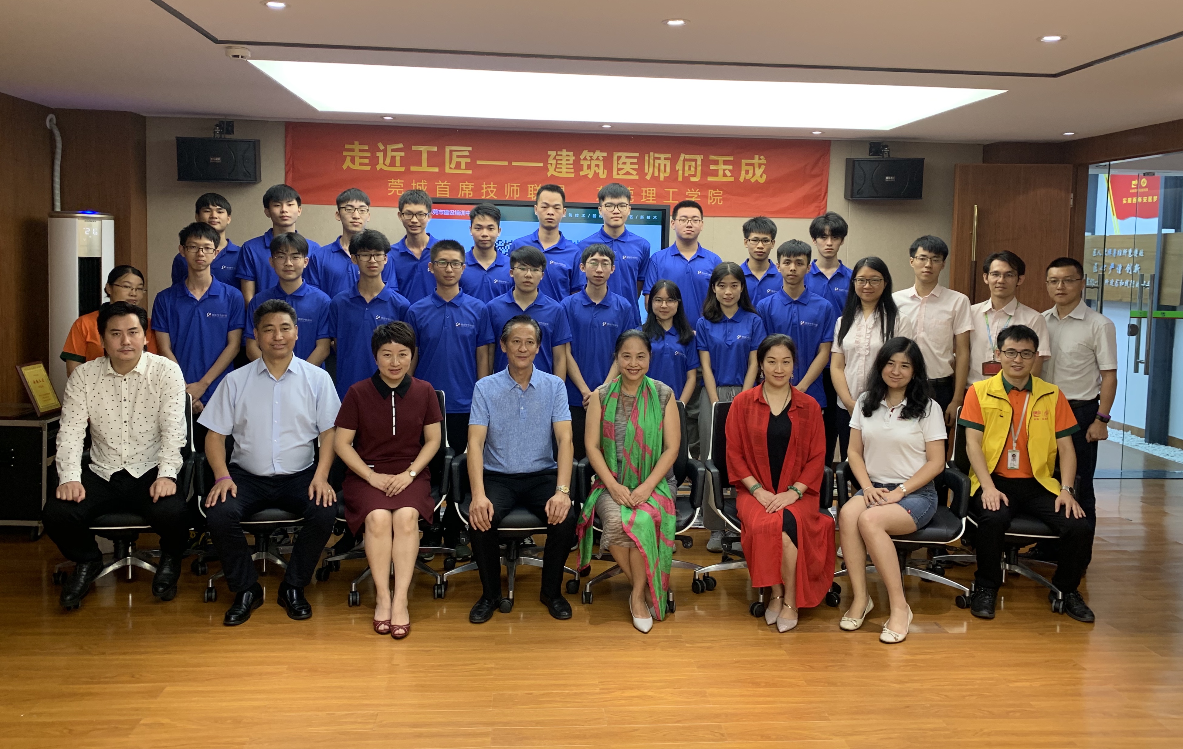 7月24日,我校与东莞市人力资源和社会保障局莞城街道(莞城首席技师联盟)共同组织了“走近工匠—何玉成”主题活动,我校2018级杨振宁创新班师生到彩丽建筑科技公司,走近工匠工作场所,现场观摩“百年安居技术体系”科技,近距离接触东莞市首席技师、百年安居总架构师何玉成,与何玉成深度对话,感受匠人精神。