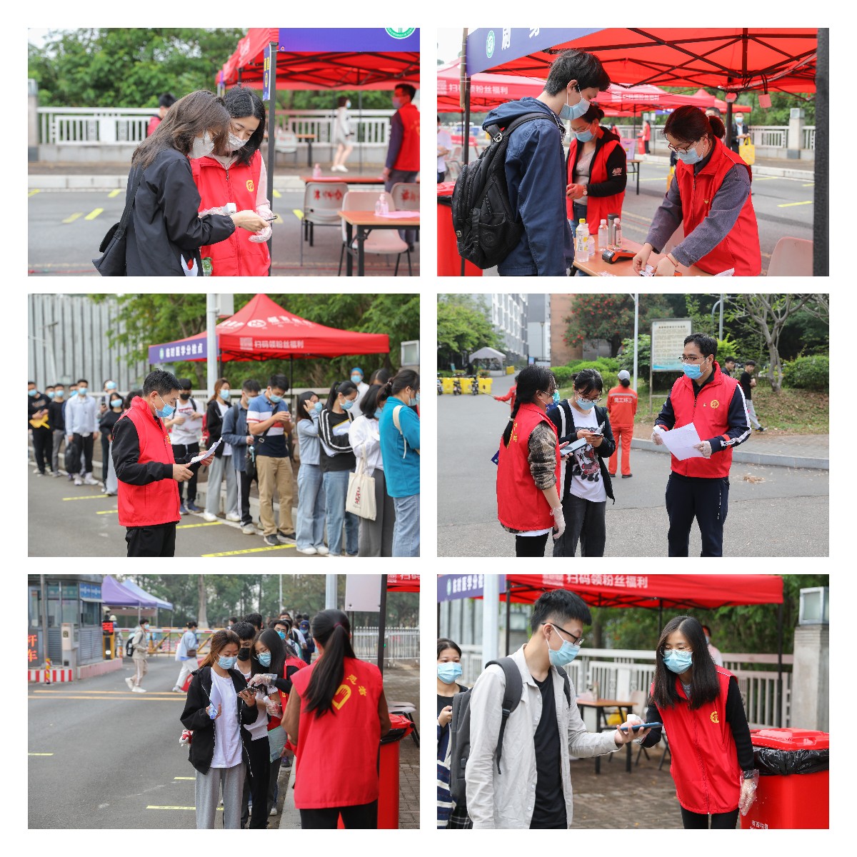 这是一次时间要求最早的服务行动。有关部门要求,4月10日松山湖校区南门、北门各有一条通道的工作人员早上6:30要到岗,其他通道6:50到岗,在历次服务中,这是时间要求最早的一次服务行动。为此,一些同志早上5点多就得起床,按时赶到服务岗位迎接考生进校。