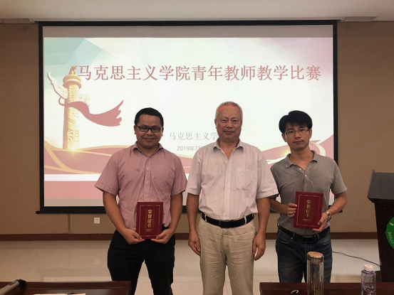 每位博士讲授之后,五位评委都会针对性地作出点评。全部展示之后,工作人员再收齐五位评委的无记名评分表,即时算出分数,公布比赛结果。吕琦元、唐元松、吕有云分别为一等奖、二等奖和三等奖获得者颁发获奖证书。吕琦元高度肯定近年来马院全体教职工在教学上的付出和取得的成绩,鼓励大家再接再厉,不仅青年老师要参加教学比赛,其他年龄段教师也要参赛。他强调,要深入贯彻落实习近平总书记在学校思政课教师座谈会上的讲话精神,定期开展思政课教学比赛,切实提高思政课教学质量。