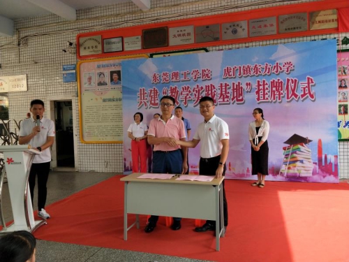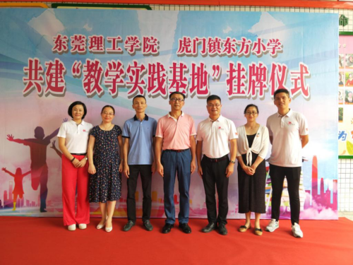 7月8日,教育学院(师范学院)党总支书记杨万江、副院长琚丹红、体育系主任唐胜英一行三人赴虎门镇东方小学举行共建“教学实践基地”的签约挂牌仪式。虎门镇教育办公室主任邓建鹏、虎门东方小学校长刘雄山、副校长杨碧辉等全体行政及中层干部和学生代表参加了此次仪式。