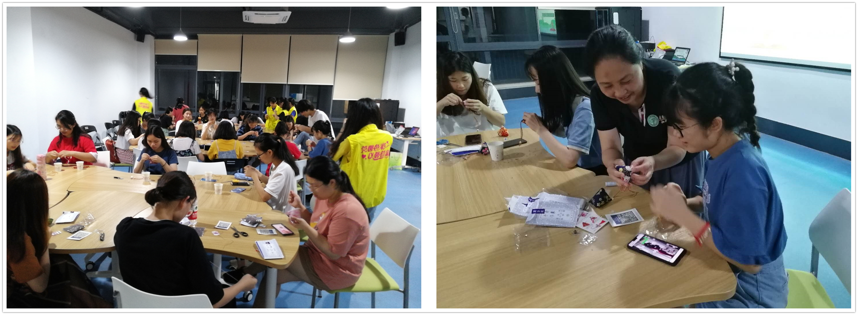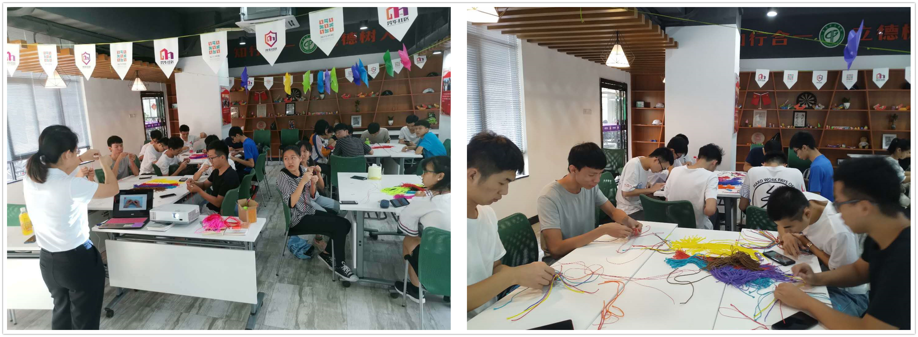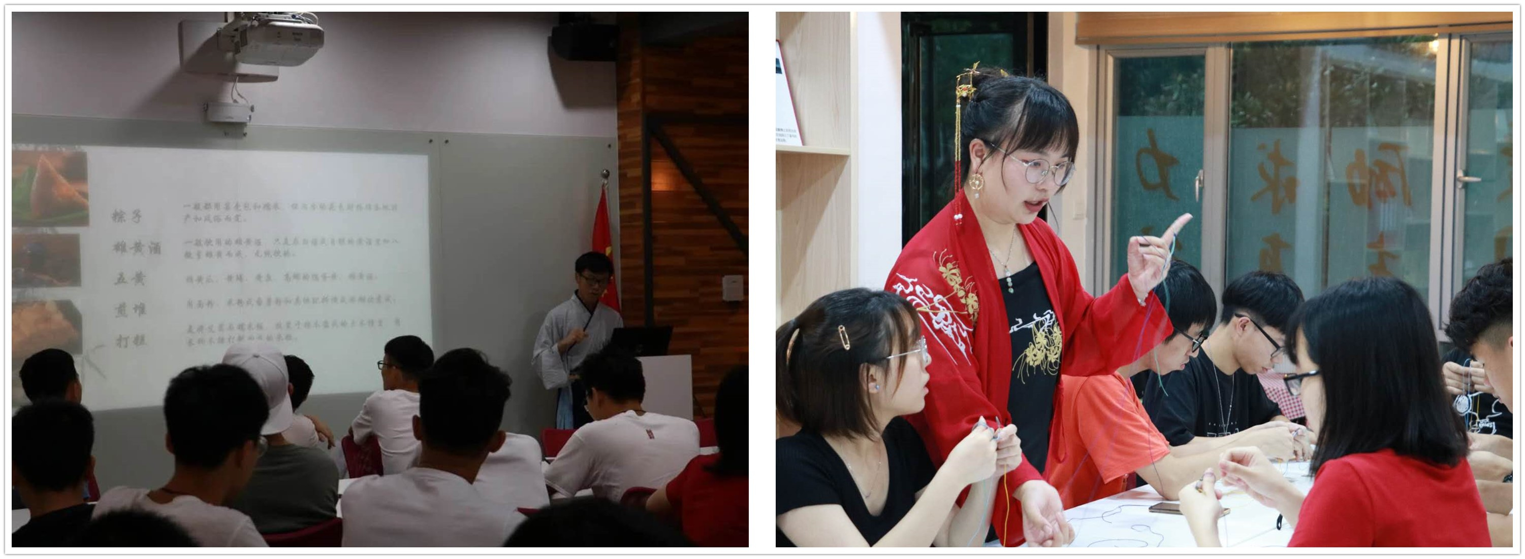 6月4日,由学生社区知行学院莞雅分院与尔雅汉韵协会合作开展的“感受传统文化”端午节活动于莞雅活动室顺利开展。活动分为“追溯端午节的起源”和“五彩绳编织”两个环节,让学生对端午节的起源、文化习俗等有一个更为深入的了解。