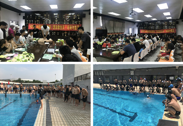 本次的培训导师是现东莞红十字水上救援队副队长、东莞市游泳中心救生员培训师、前蹼泳世界冠军吴志前。初级游泳救生员技能考核主要分为救生员理论考核、技能达标考核以及救生员实操考核,其中技能达标考核包括25米速泳和20米潜泳,救生员实操考核包括现场赴救和现场急救。