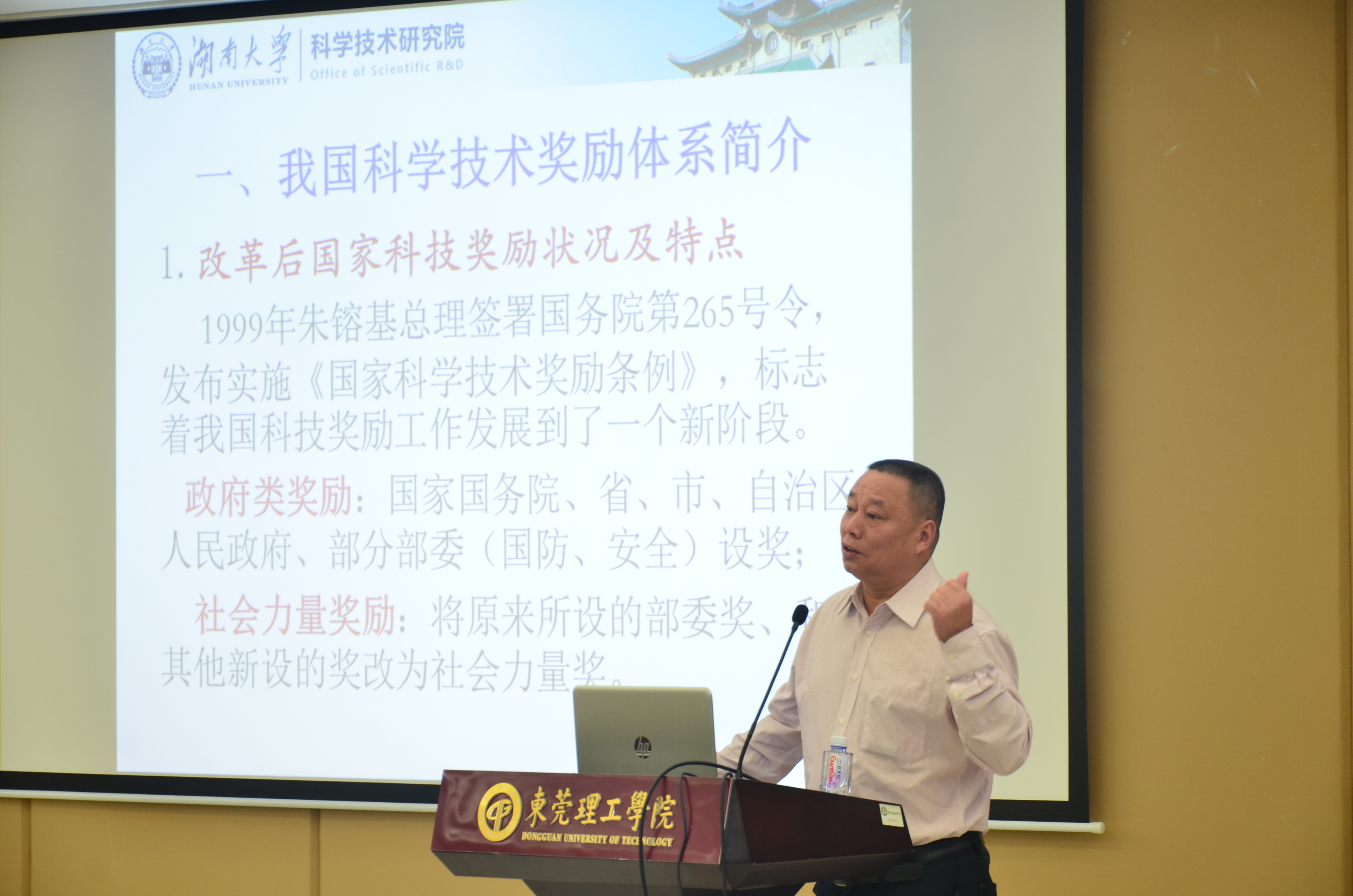 为提升学术水平和创新能力,全面加快高水平理工科大学建设,11月16日,学校科技处邀请北京工业大学科学技术发展院特别顾问、中国高等教育学会科技管理研究分会常务理事及副秘书长周克刚教授来校作科技奖励申报辅导报告会。报告会由科学技术处处长范洪波教授主持。各理工科学院分管科研的负责人、科研秘书以及校级科研团队负责人参加了报告会。