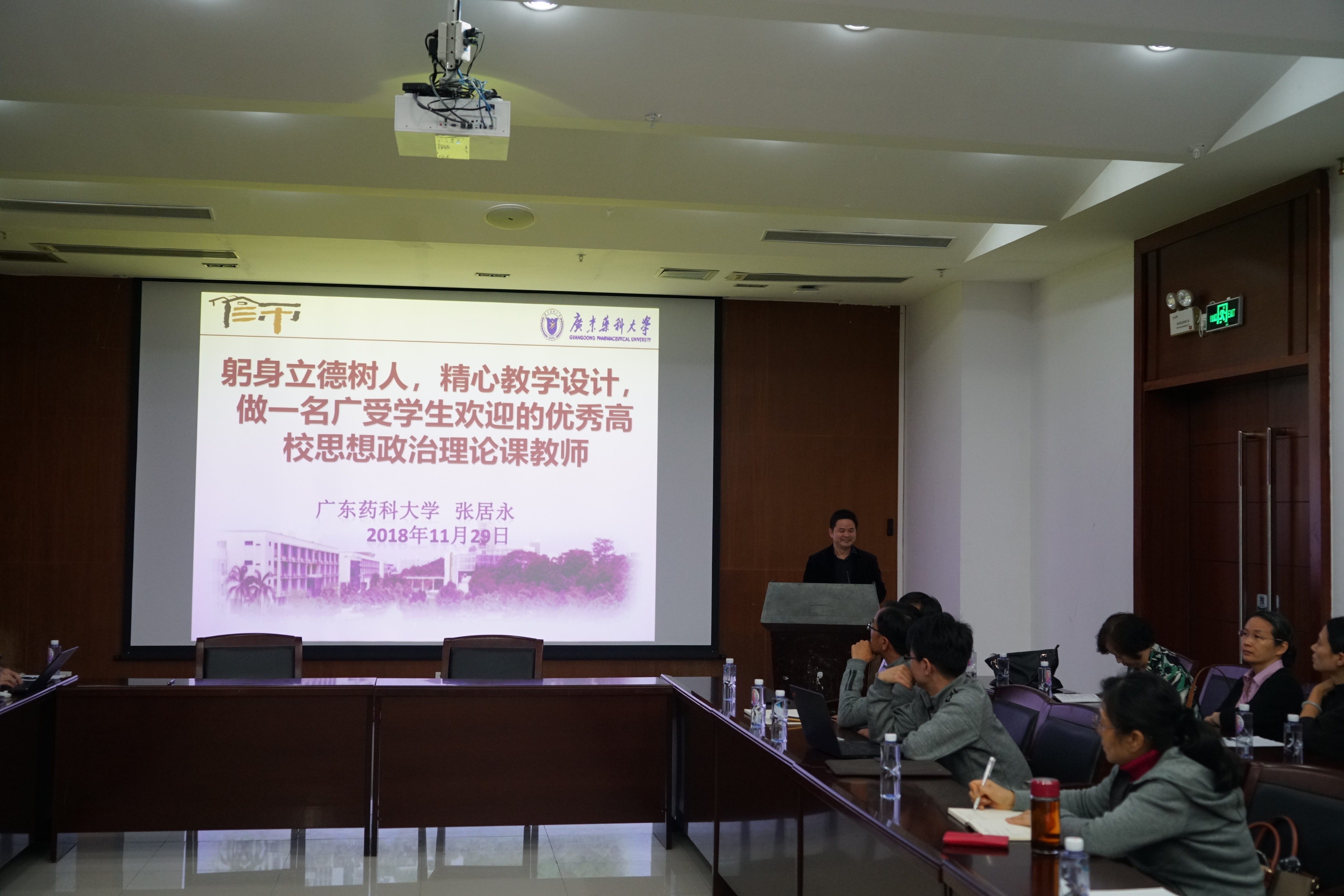 为提升思政课质量,杜绝“水课”,打造更多“金课”,1129日,马克思主义学院举行思想政治理论课教学设计专题讲座。广东药科大学马克思主义学院张居永副教授应邀作“躬身立德树人,精心教学设计,做一名广受学生欢迎的优秀高校思想政治理论课教师”专题辅导报告。