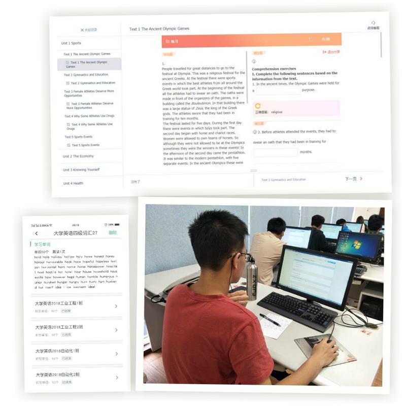 依托“文华在线”的”“优学院”教学云平台,我校大学英语采用混合式教学模式,强化形成性评价,突出过程管理,以任务为驱动加强学生对知识的掌握。自2017年春季学期公外部首次尝试使用“优学院”教学云平台实施信息化教学,直到2019年春季学期,经过两年的迭代,公外部全体教师已全面铺开信息化大学英语教学。“互联网+”的即时数据分析让教师快速了解学情,在课堂上更有针对性地讲解学生疑惑点与知识重难点,并能与学生进行深入交流。截至目前,公外部在“优学院”教学云平台开展了丰富的教学活动。仅2019年春季学期,公外部对在线微课进行了优化设计,由英美外籍教师为教材配套录制了多个语言文化视频;为帮助学生备考大学英语四级创建了63个四级词表共3000多个词用于“优学院”手机端课堂听写,936道四级相关试题并先后发布了74项相关测试。这些教学活动极大丰富了课堂教学全过程,更加夯实了教学内容,课堂气氛热烈,学生学习积极性显著加强。