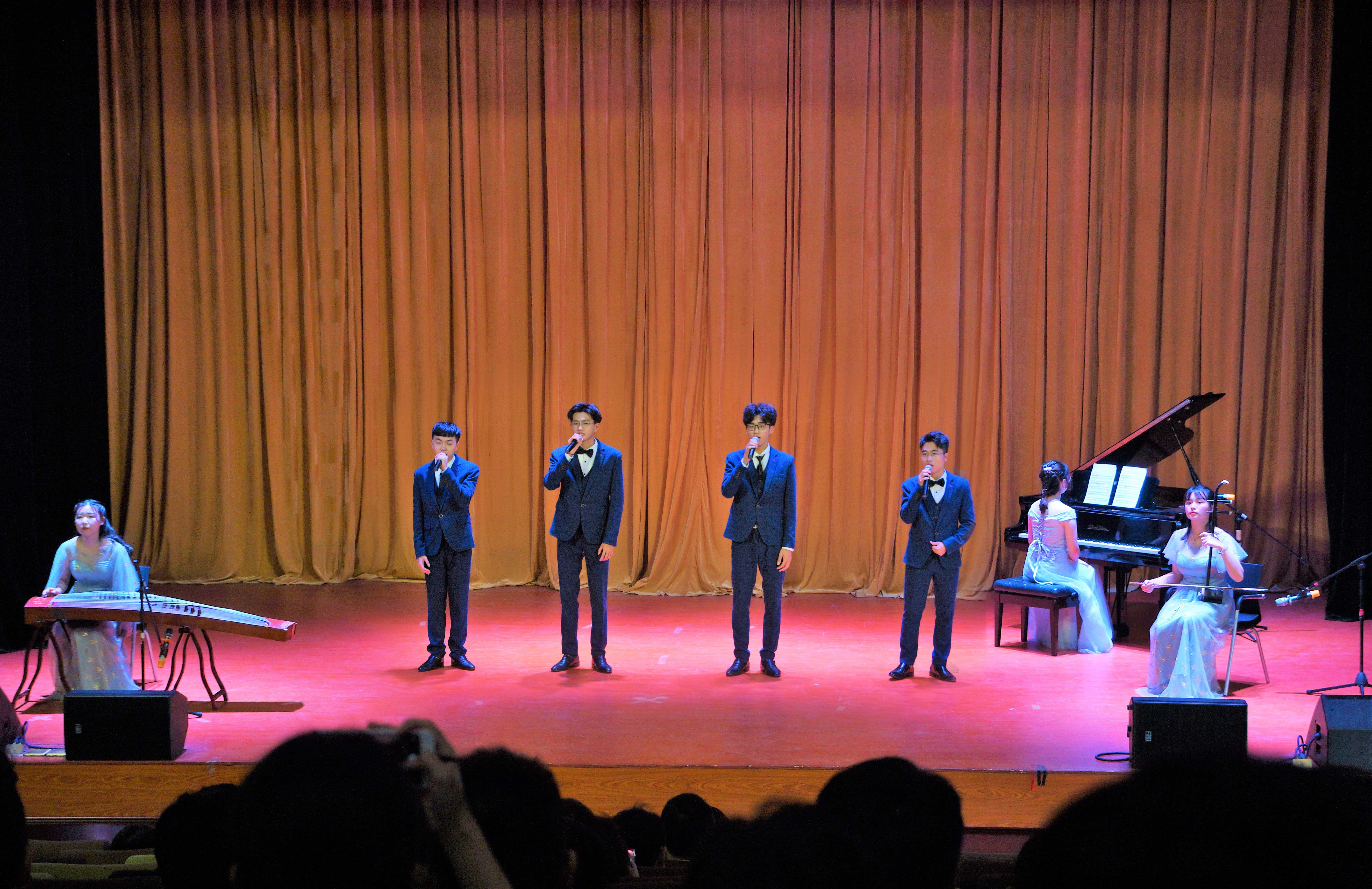 当日,化能学院作为工科学生表现了多才多艺的一面。青春动感的舞蹈拉开了活动的序幕,钢琴、古筝和二胡的伴奏,结合了现代和古典音乐曲风,改编的《化学元素周期表》和《化学版青花瓷》把化学知识用歌曲演唱出来,让大家感受到科学和艺术相互结合的魅力。一曲男声合唱《鹿 be free》将现场气氛推向高潮,清新优美的旋律,声情并茂的演唱,点燃了师生的热情。