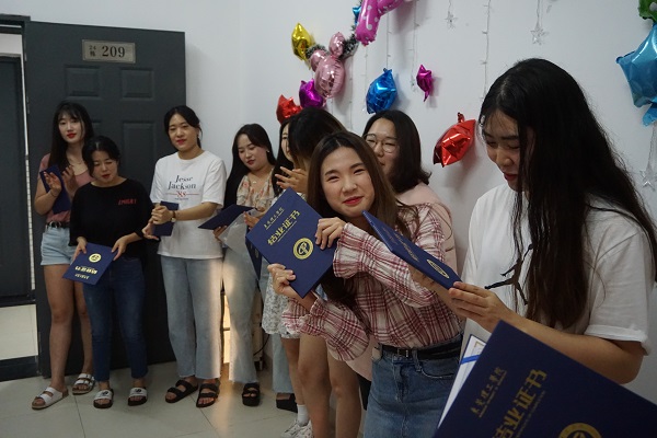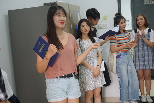 首先,国际学院的老师为韩国短期班的学生们颁发了结业证书,并对她们一个月以来的学习和成长给予了肯定。