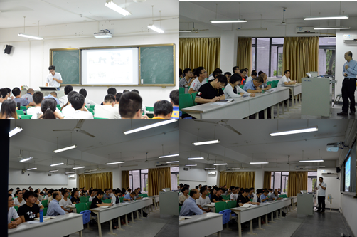 第一场是电智学院专场汇报会,徐永钊老师作了题为《基于光纤的脉冲压缩研究》的汇报,讲解了采用光纤作为介质进行脉冲压缩的基本原理、利用光纤进行高质量脉冲压缩的技术方案等。刘学良就当前智能交通中的车辆自主安全控制中的热点问题与在座师生进行了交流。张耿老师重点对访学期间的研究领域光纤传感技术进行了系统深入的介绍。