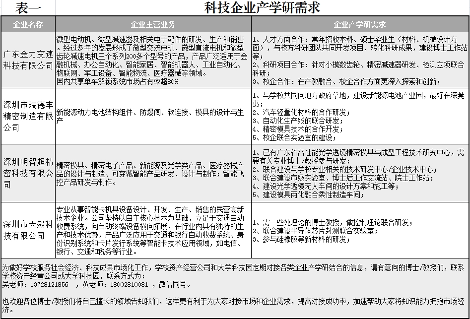 7月24日上午,由45612藏宝阁资料大学科技园、东莞东理大米成长智能制造产业投资基金等单位组织的产学研交流会在大学创新城举行。来自深圳、惠州多家拟上市企业与我校相关单位进行了交流。会议就加强校企合作事宜达成共识,并整理出企业需求信息表(见表一)。