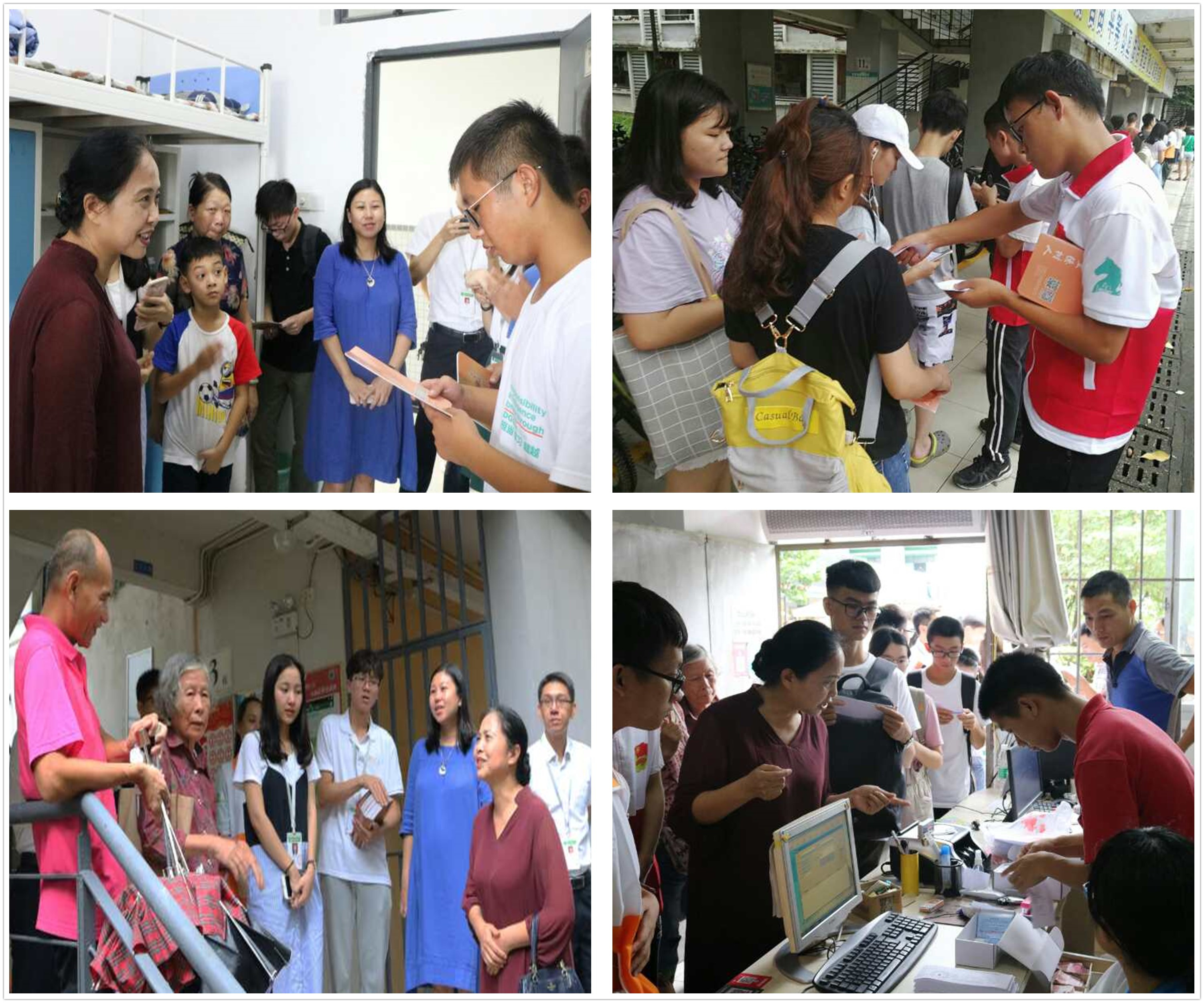 走访过程中,知行学院工作团队和志愿者们热心为遇到困难的新生提供帮助,为遗失手机的新生家长介绍生活老师以及学校失物招领的相关地点和公众号,帮助其寻找失物。面对新生办理热水卡“排长龙”现象,及时找到相关负责人,进行现场沟通,提出改进建议,在社区团工委、知行学院学生会志愿者的加入后,新生办理热水卡的速度得到有效提高。