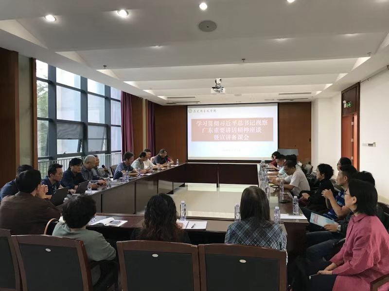 会议对学习贯彻习近平总书记视察广东重要讲话精神的宣讲备课进行了部署。学院将组建备课团队,经过紧张的精心备课后,尽快拿出高质量的讲义和课件,并安排全院专任教师在课堂上对重要讲话精神进行专题讲授。