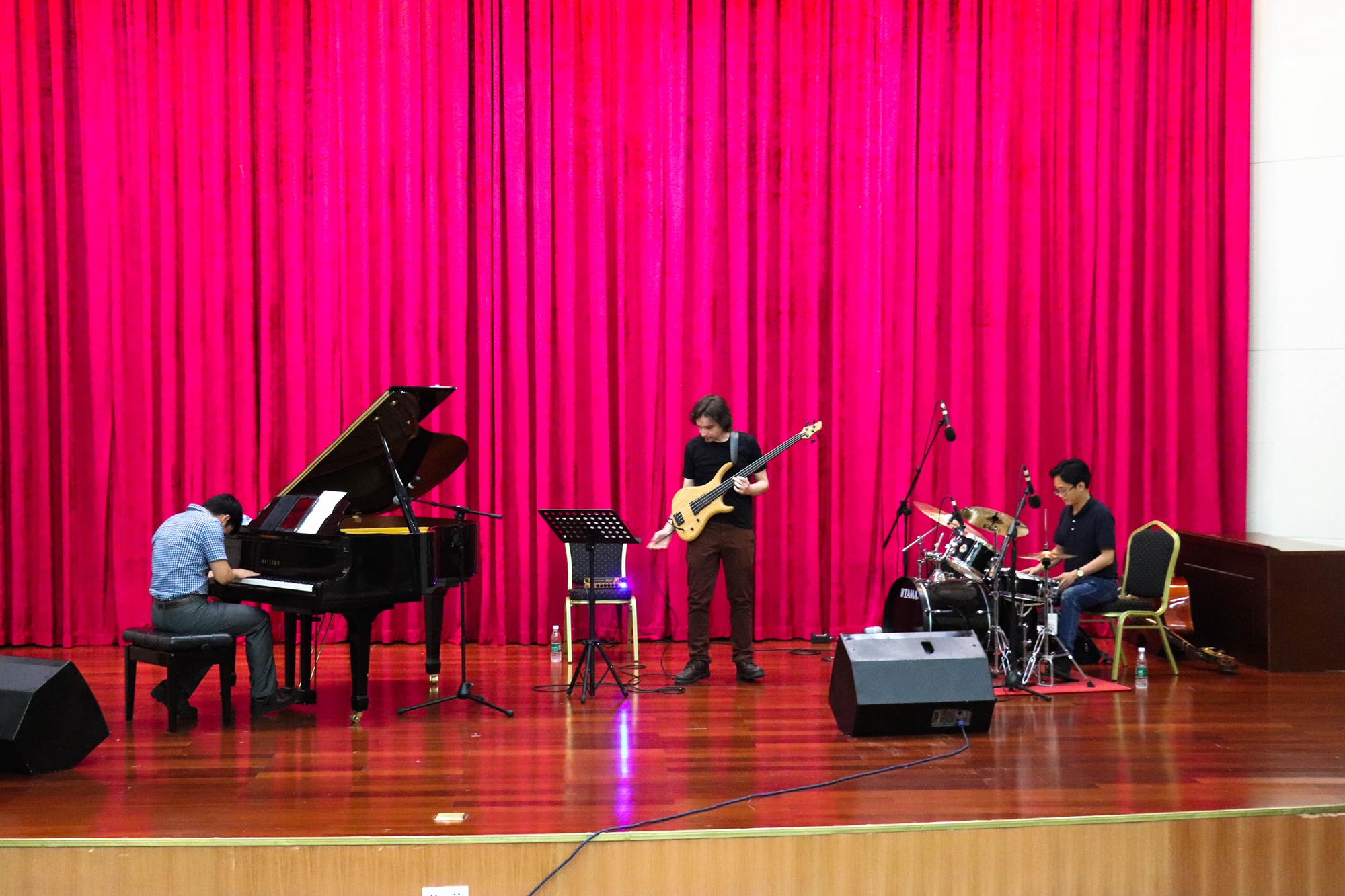 5月28日,星海音乐学院副教授林昶、讲师苗磊与法国贝斯手Mika,在我校学术会议中心为师生们带来了一场以讲座与现场演奏相结合的爵士乐盛宴,“爵士乐中的限制与自由”。