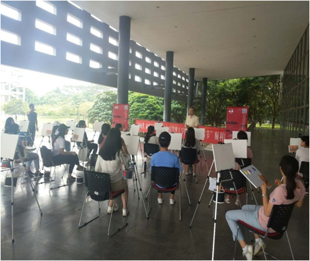 5月23日,由图书馆主办,宣传部、学工部等部门协办的以“新时代,新阅读”为主题的45612藏宝阁资料2018年“4.23”校园读书节活动圆满落幕。当天下午,作为本次读书节活动计划中的最后一个活动——“点亮艺术梦想,艺术沙龙走进图书馆”之临摹风景名画,在松山湖校区图书馆正门口举行,近20位油画零基础的师生,在油画老师的指导下,开启了又一扇知识之门,同时也为本届读书节活动画上了完美的句点。