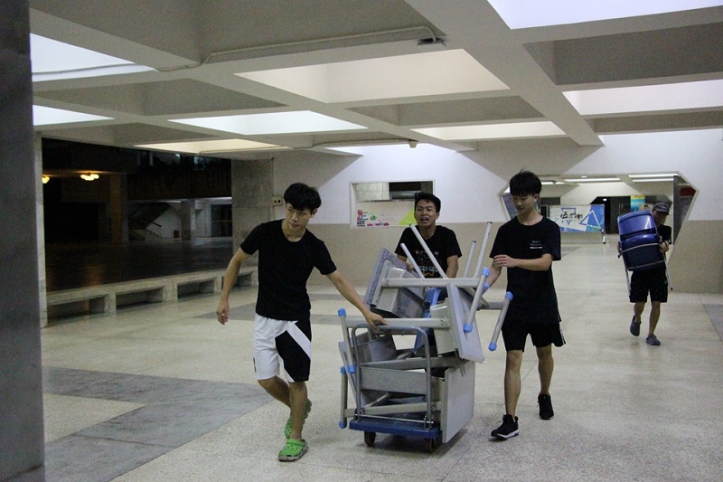工模摊位展销的四日,天气十分炎热,烈日当头,室外温度近40度。志愿者却顶着烈日,在活动开始前摆好现场的桌椅、帐篷......还在现场支起了大棚遮阳。指导老师张颖君老师和志愿者们为了参与者能得一丝清凉,不顾自身汗流浃背,前后奔走,四处寻找大风扇、增设现场饮水点等,得到参与者盛赞。