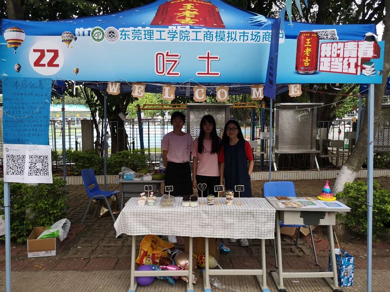 “这里教你最正确最优雅的吃土方式”——是22号摊位的宣传口号。土也能吃?其实她们出售的是用奥利奥做出的各种纯手工食品,有各式的蛋糕甜品,琳琅满目,很是漂亮。这是六位大一新生的摊位,她们第一次参加工模,也是她们的第一次叫卖。摊主表示“天气很热,且食品区的竞争很大,很考验我们的体力和营销能力。但是几个朋友一起创业,很充实也很快乐,是我想要的大学生活”。