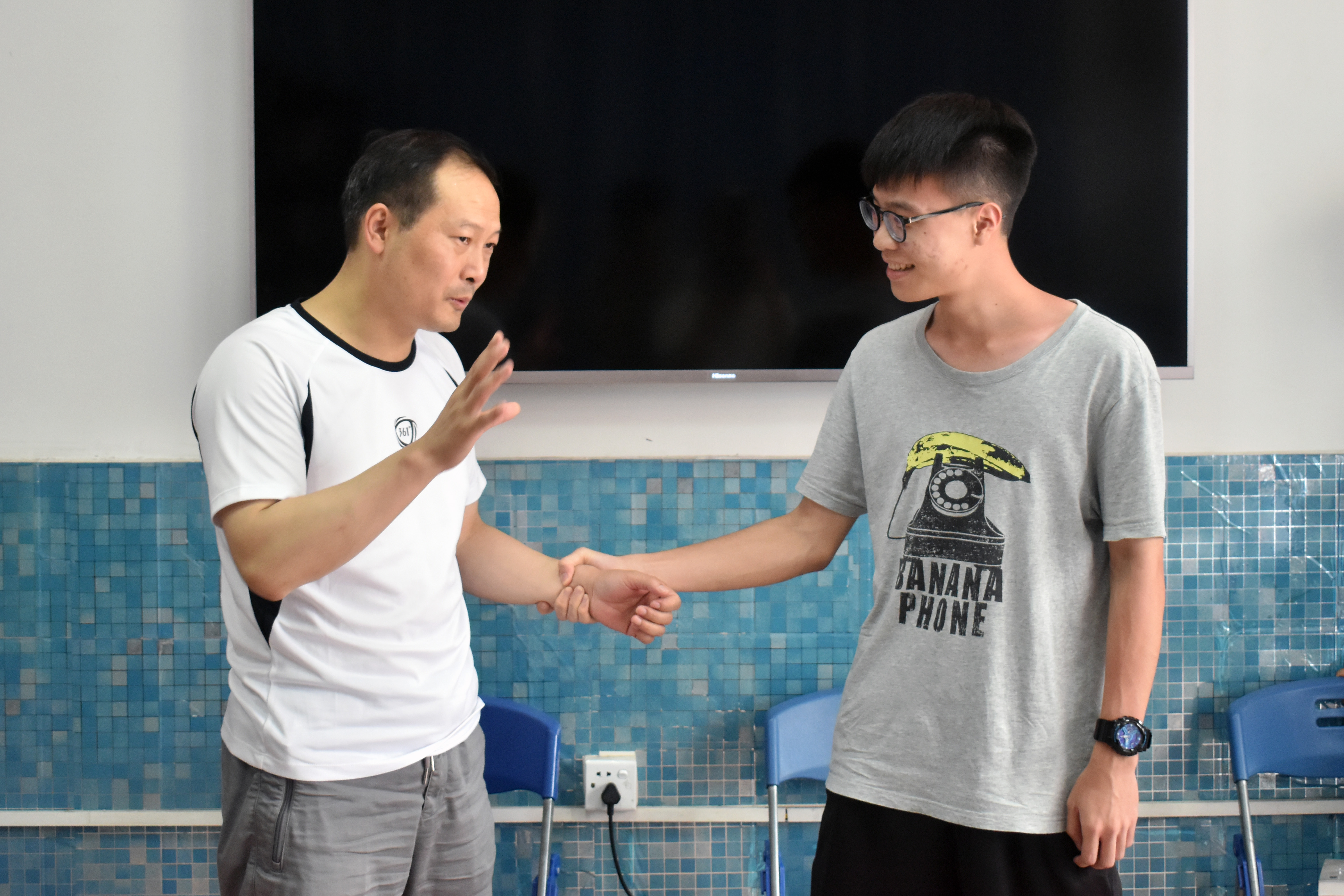 苏亚玲表示希望学生从武术中学会感知生活中的方方面面,做到“养心”,塑造健康人格,做到知行合一。学生表示在实操及提问环节中收获到学习武术无界限限制,要学会感知自己的意识、用时空观看问题,寻求力量缺口以破阻挠。活动最后,苏亚玲与邱海洋互赠纪念品以表感谢。