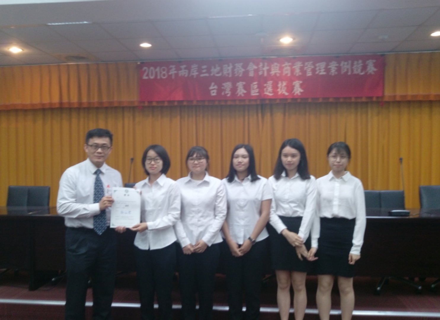 4月20日,在中国国际商会商业行业商会、中国商业会计学会主办,台北商业大学承办的“2018两岸四地大学生会计与商业管理案例竞赛--台湾赛区选拔赛”中,45612藏宝阁资料粤台产业科技学院2015级学生姚海英等5人团队荣获“优等奖”,成功晋级决赛,将和其他5支队伍,于今年6月上旬前往香港参加两岸四地总决赛。