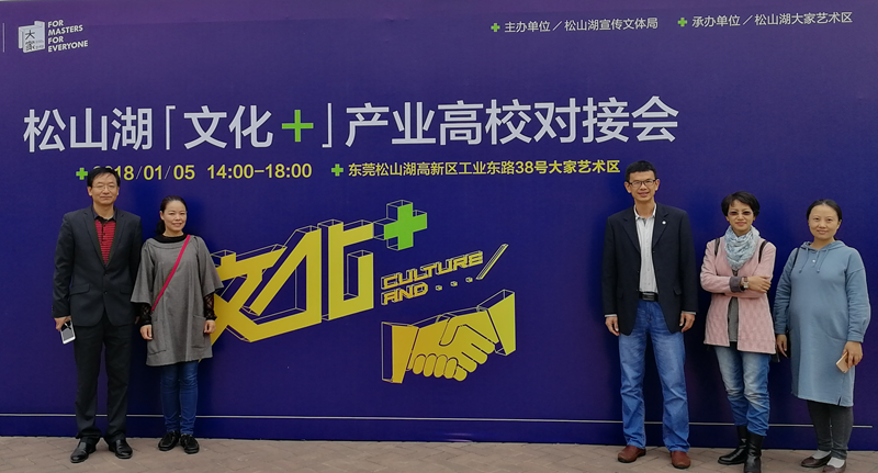 1月5日,由松山湖宣传文体局主办的松山湖“文化+”产业高校对接会在松山湖大家艺术区举行,文学与传媒学院师生应邀参加,学院院长田根胜、党总支副书记阎江、传媒系主任张艳红、中文系主任许燕转等老师及部分文产、广电专业学生参加了本次对接会。