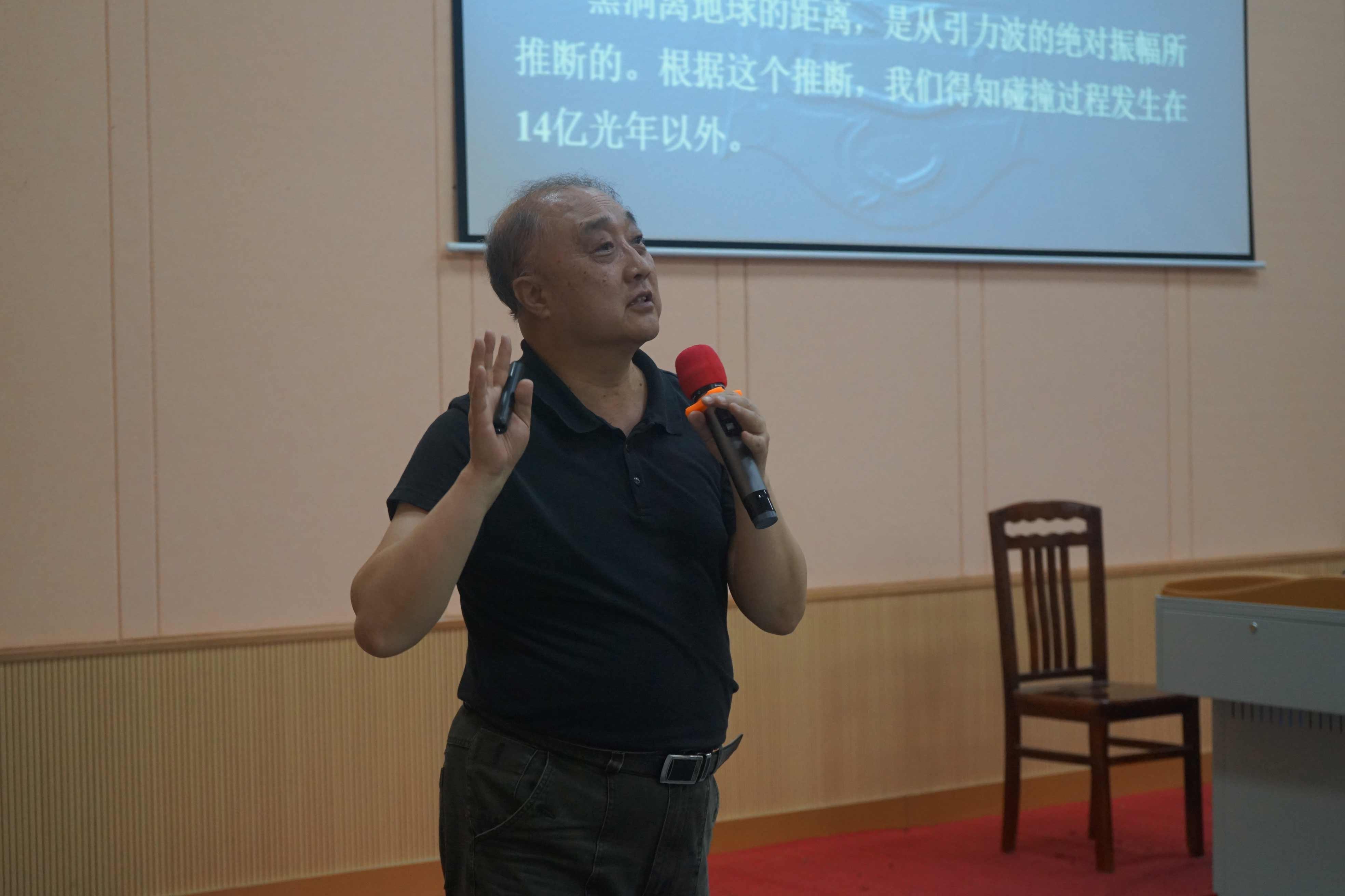 3月26日晚,中国科学院老科学家科普演讲团成员、北京师范大学物理系知名专家学者刘大禾教授受邀来我校开展了一场关于引力波探测与黑洞的专题科普讲座,电子工程与智能化学院部分领导老师和全校两百多名学生到现场聆听。