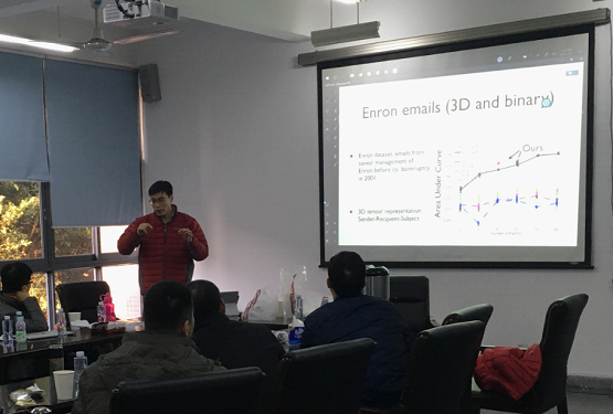 12月20日下午,电子科技大学的徐增林教授带来机器学习与大数据学术讲座系列讲座第二期:主题为“张量网络与神经网络”的讲座,徐增林教授讲述了在大数据时代,多向数据几乎无处不在,如推荐系统、人脸识别、传感器网络等,张量分解是多通道数据分析的一个重要途径。讲座的第一部分介绍张量分解的规范方法和最新发展。第二部分还将张量分解方法推广到张量网络,讨论了张量网络与深层神经网络之间的联系。在座师生受益匪浅,纷纷表示对张量网络有了进一步的了解与认识。