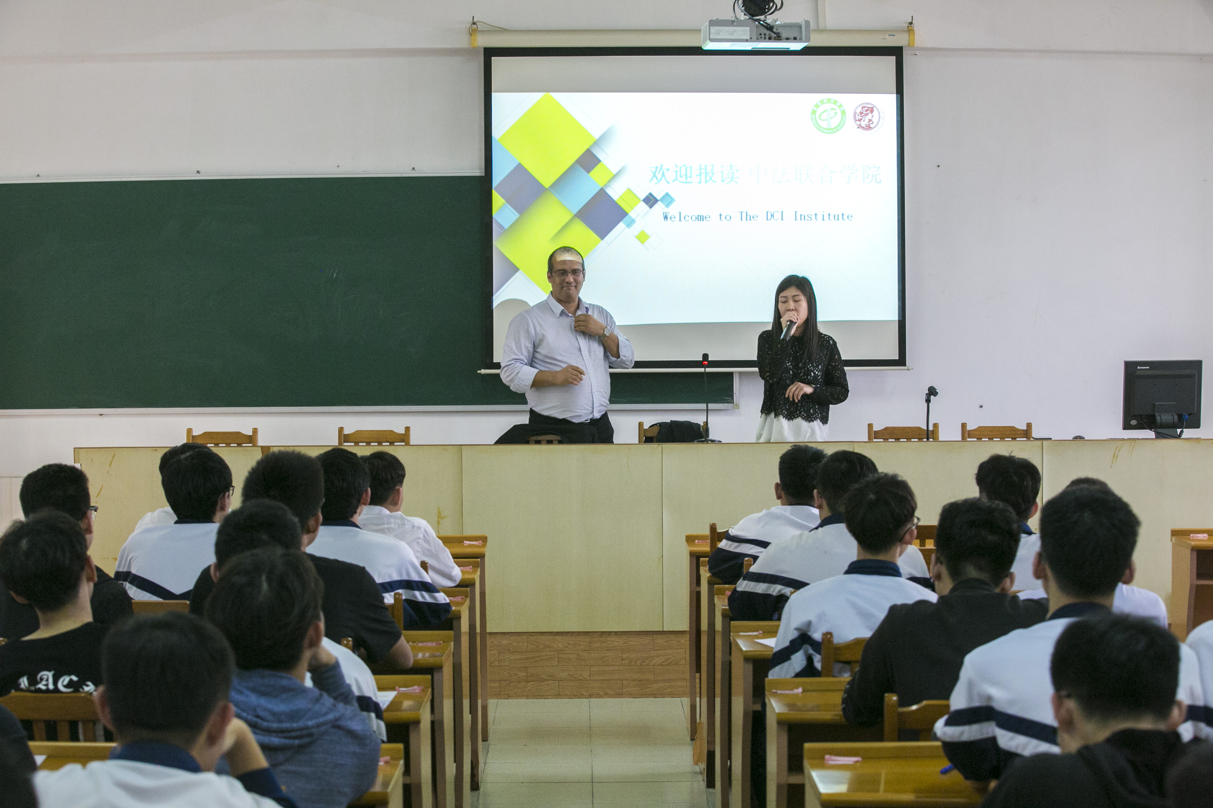 代表团一行还到东莞市东华高级中学进行2018年中法联合学院高考招生进校宣传活动。相关教师向在场的学生介绍了学院情况、培养模式、专业就业前景等。