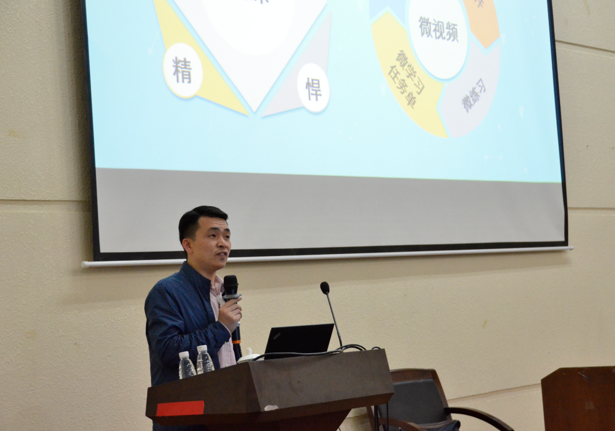 讲座初始,胡教授介绍了微课的前世今生,诠释微课是什么,以及微课的定义。并指出微课的特点:短小精悍,时间短、内存小、内容精、效果悍。在讲座中,胡教授向我们介绍了国内外的微课现象,并结合丰富的微课实例为我们介绍了常见微视频的类型以及微课设计与制作的一些基本原则与简单技巧。通过十多个风格各异、各有特点的视频,结合丰富的图文信息,为我们深入浅出地介绍了微课的来源、微课的内涵,微课常犯得错,以及该如何正确制作以及使用微课等。讲座最后,多名教师围绕课程共享、怎样保证微课质量等踊跃提问,胡教授一一解答。