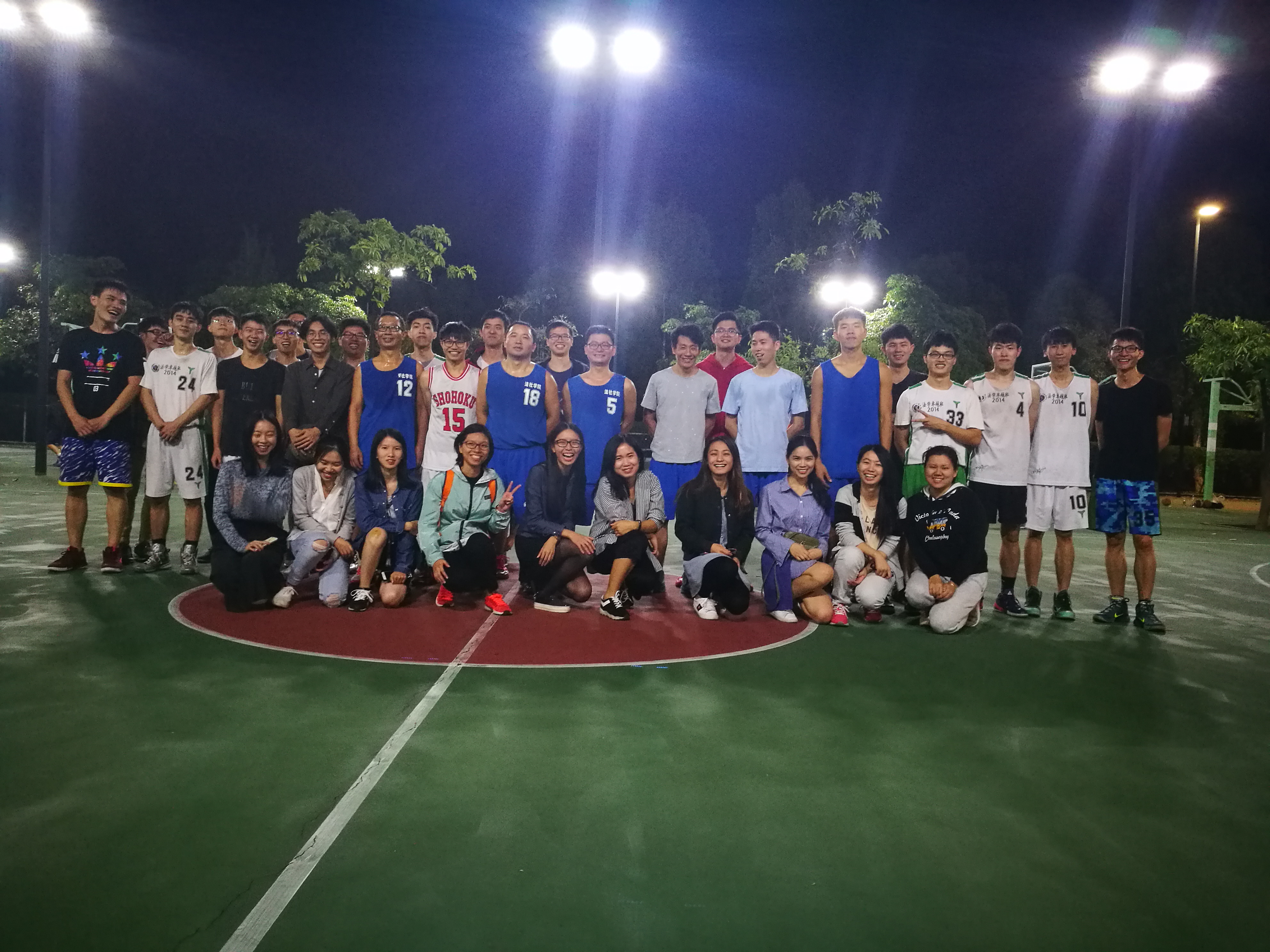 为丰富学生的课余活动,帮助师生排解学习工作的压力,促进学院师生健康生活。11月7日,法社学院教工篮球队与2014、2015级法卓班,在松山湖校区篮球场举行了一场篮球友谊赛。