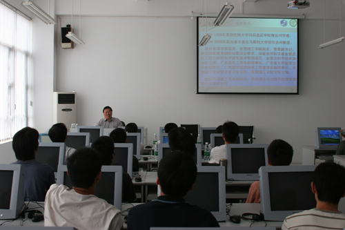 杨院长以自己所主持的一个科研课题作为报告的引线,详细向师生们阐述了科研的选题、构想及科研实验的进行。