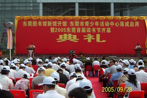 2005年9月28日下午我院共有50名师生在东莞图书新馆参加了东莞图书馆新馆开馆、东莞市青少年活动中心落成启用暨东莞首届读书节开幕典礼。