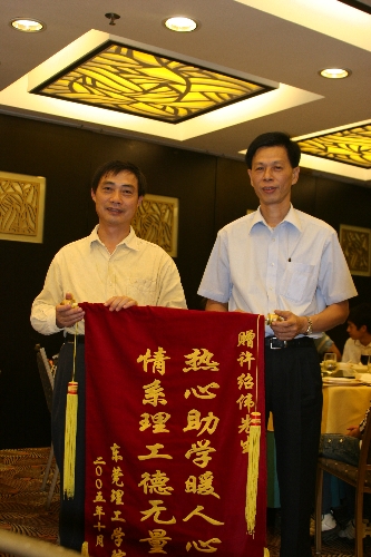 昨日,东莞知名企业家、东进照明总经理许绍伟先生向我院捐资助学。 学院临时党委副书记王江水出席了昨晚的捐资仪式。他在仪式上向许先生捐资助学的善举表示感谢,对其热心公益事业、帮教扶贫精神表示高度的赞赏,并代表学院向许先生赠送了绣有“热心助学暖人心 情系理工德无量”的锦旗。 许先生在仪式上鼓励同学们克服困难,刻苦学习,争取以优异的成绩完成学业。 据悉许先生共捐资20万,每年有三十名学生将从中受惠。