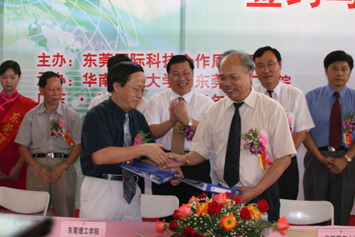 10月13日,我院与华南理工大学共建设东莞研究生培养基地签约暨揭幕仪式在2005东莞国际科技合作周会场隆重举行。