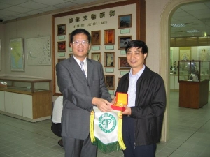 王江水副书记在参观薄上留言 王江水副书记赠送华梵大学纪念品