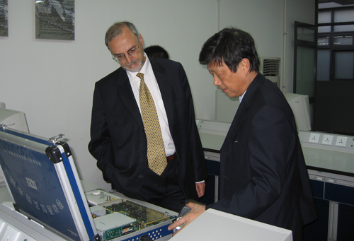 座谈后,客人饶有兴趣地参观了电子系实验室及机械系金工实习中心和实验室。