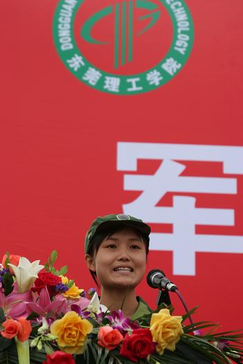 广播电视新闻学专业学生林慧莹代表2005级新生在开学典礼上发言