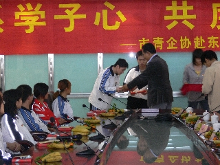 座谈会上,青年企业家代表与在场的大学生热情交流,共同分享其创业历程、成功经验以及人生感悟,鼓励在座大学生把暂时的困难当作是锻炼品格、磨练意志、努力奋斗的动力,树立自强、自立、自信的人生观和价值观,成就未来,回报社会。之后,企业家代表向留校的贫困大学生赠送了慰问金,还赠送了《东莞青年企业家创业访谈》和《东莞市青年就业服务手册》,希望能通过这方面阅读,激发困难大学生的就业信心和创业热情,为将来的成功就业创业树立正确的人生坐标。