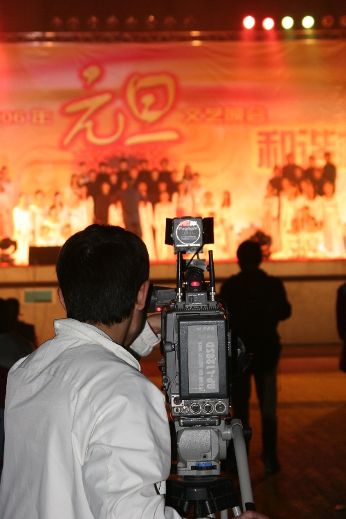 精彩的文艺演出吸引了两镇广电站前来采访报道