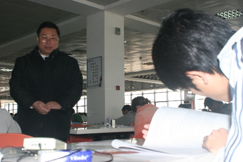 元月6日,院长杨晓西教授冒着寒风,在有关部门负责人的陪同下,检查了正在进行中的期末考试工作,并慰问了广大考务工作人员。