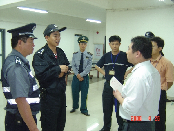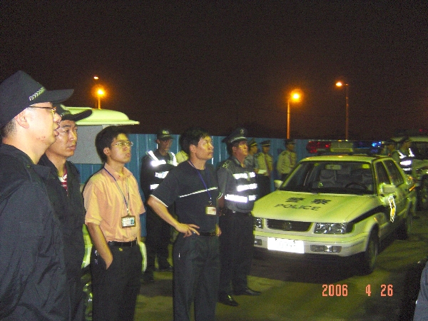 为配合东莞市治安整治“铁腕”行动,4月26日晚,保卫处联同松山湖公安分局、中区派出所对院内各流动人口暂住点进行了清查。松山湖公安分局钟惠洪副局长、中区派出所杨擎天所长和保卫处相关干部、校卫队员参与了这次联合突击行动。 检查人员深入到体育中心建筑工地、商业网点、民工居住工棚等地,对各类人员身份进行了检查,为我院“迎评”冲刺阶段工作创造良好的校园治安环境。