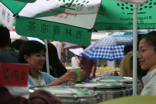 图为东莞知名凉茶企业在美食节期间开展免费赠饮活动