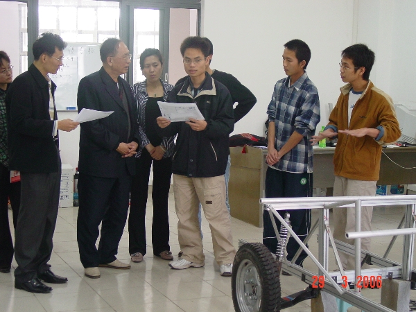 3月29日上午,林养素教务长前往机械系检查“创新人才培养计划”项目——太阳能汽车研制小组的工作情况。该项目指导老师李熙亚老师、机械系党总支副书记杜应发老师陪同林教务长前往研制现场观看、考察,研制小组成员陈海彬、李荣泳、路居颖、李经飞、江练营等五位同学对太阳能汽车研制的原理、进程做了详细的说明和介绍。