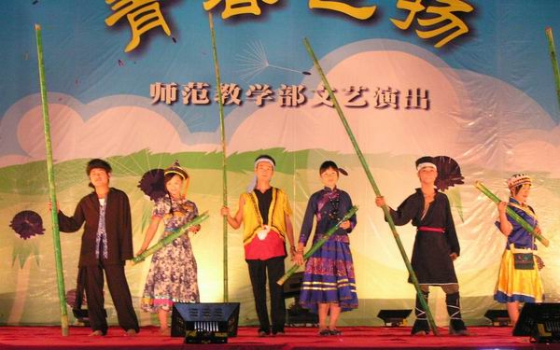 尽管晚会举行前的一个钟头,忽然下起大雨,然而所有工作人员并没有因风雨而却步,当雨点逐渐变小后工作人员们又迅速将舞台布置一新,师范教学部的团体凝聚力在此表现的淋漓尽致。