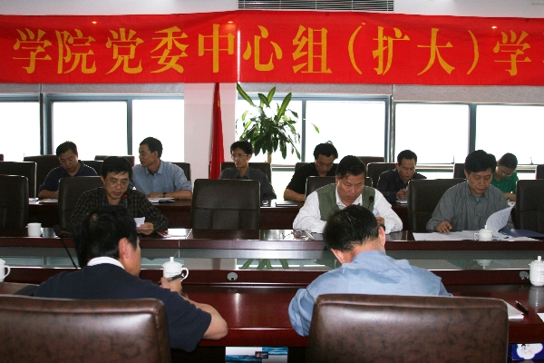 5月17日下午,学院党委中心组(扩大)会议在行政楼会议室召开,中心组成员及有关专业负责人参加了会议。会议主题是以迎接学士学位授予单位和授予专业的专家评审为契机,进一步提高教学质量。王江水副书记主持了会议。