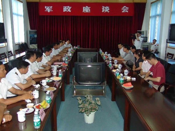 拥军慰问团受到了部队官兵的热烈欢迎。南海舰队某训练基地苏云太司令、许益阳政委和基地全体官兵列队欢迎慰问团的到来。部队、院校双方欢聚一堂,共话鱼水情谊。大家就如何开展好学生的军训和爱国主义教育等方面的工作进行了深入的交流,并表示要加强部队、院校的合作,为东莞争创“全国双拥模范城”作出贡献。最后,戴炳源副院长45612藏宝阁资料城市学院党委副书记朱冰分别代表45612藏宝阁资料和城市学院向部队赠送了慰问金。