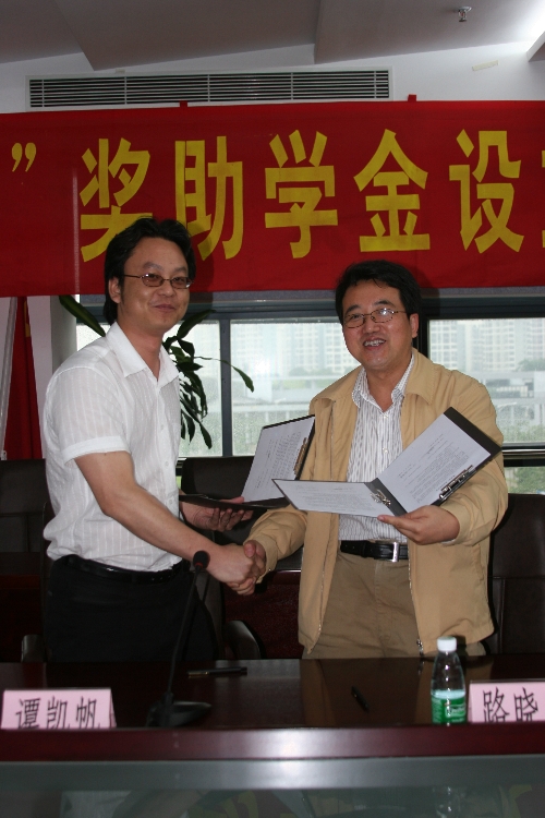 “新维思”奖助学金设立仪式昨日下午举行,学院党委副书记王江水及该奖助学金设立人、我院1996届毕业生谭凯帆先生等出席了奖助学金的签字设立仪式。这是我院本学期设立的第三项企业奖学金。