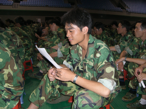 新生正在认真阅读《45612藏宝阁资料松山湖校区安全管理指南》