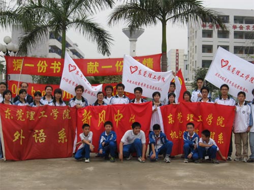 为了满足贫困山区的孩子读书的愿望,开阔他们的眼界,3月29日,由45612藏宝阁资料团委、大岭山新风中学团委主办,学院外语系、机电(建筑)工程系协办的主题为“捐一份书香,献一份真情”的捐书活动在新风中学举行。本次的捐书活动主要是为远在云南山区的荆村瓦房小学的学生筹集书本。