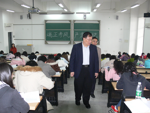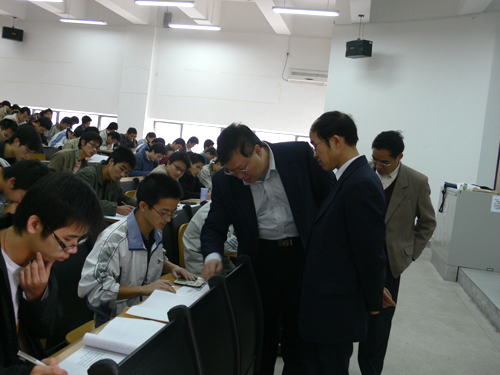 1月15日早上,我院院长杨晓西教授在教务处处长阮湘元教授陪同下到各考场巡查,检查考场安排、监考教师到位及考场周边环境等方面情况,对广大考生自觉遵守考场纪律、沉着答题的井然秩序表示满意。 据悉,本学期期末考试前夕,教务处和各教学部门就认真落实期末考试工作的每一个环节,并对学生加强诚信教育和考风考纪教育,希望通过师生共同努力,维护良好的考纪考风。