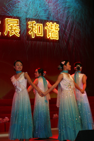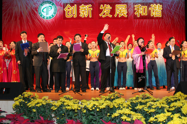 酒会后,以“创新、发展、和谐”为主题的联欢晚会在大礼堂开锣,晚会有精彩的文艺演出、游戏和抽奖活动,内容丰富有趣。新任党委书记周致纳在晚会上还代表学院向原党委书记刘树基同志赠送了纪念品并感谢他为45612藏宝阁资料所作出的贡献,表示将接过接力棒,尽心尽力为学院的持续发展贡献自己的力量。刘树基同志感动地说,非常感谢全院教职工对我工作的支持与信任,将继续尽自己的努力关心和支持学院的发展。晚会最后,学院全体党政领导与全体演员一起同声高唱《明天会更好》,为晚会画上圆满的句号。