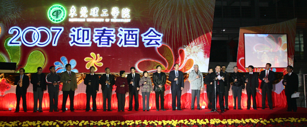 1月22晚,我院首次在校山湖校区举行大型迎春团拜酒会暨联欢晚会,全院教职工喜气洋洋迎接新春的到来。刘树基同志,市人大常委会副主任张顺彩,市副市长、学院党委书记周致纳,副市长吴道闻,市政协副主席周文媛,学院党委副书记、院长杨晓西,市委副秘书长、松山湖管委会工委书记、常务副主任陈建枝,市政府副秘书长朱益民,学院领导王江水、黄碧莲、安少华、邹晓平、戴炳源,学院老领导姚锦柏、张遐龄、欧阳禹湖、钟剑辉、王素其、包树元等参加了迎春团拜活动。