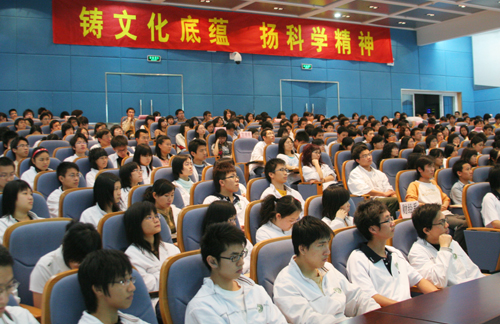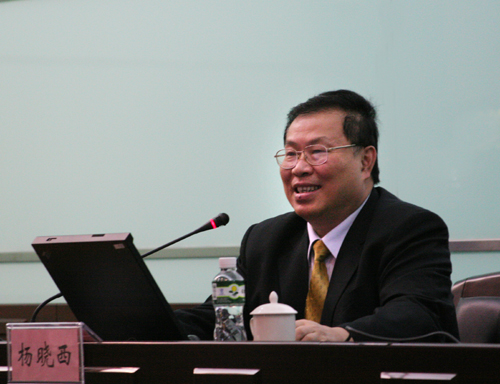 杨晓西讲演的题目是“金色年华新征程——与大学生共勉”,讲演以杨晓西自己的成长经历,讲述了求学、留学的甘甜和艰辛,告诉同学们成功是从不断的失败中获得的经验教训,要用心把握成功的机遇。